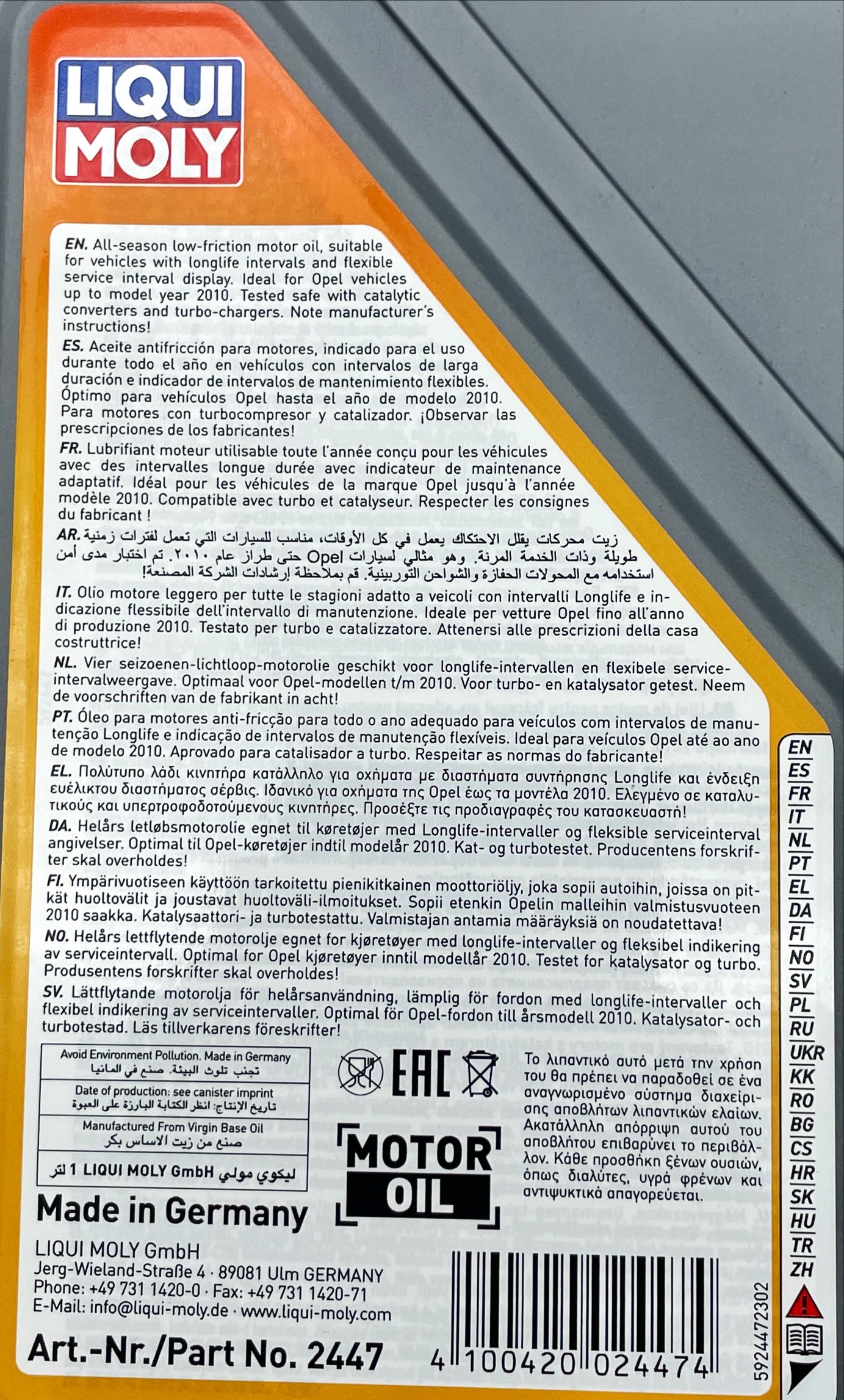 All-season oil for gasoline and diesel engines. Ideal for Opel vehicles up to model year 2010. Tested for turbochargers and catalytic converters.