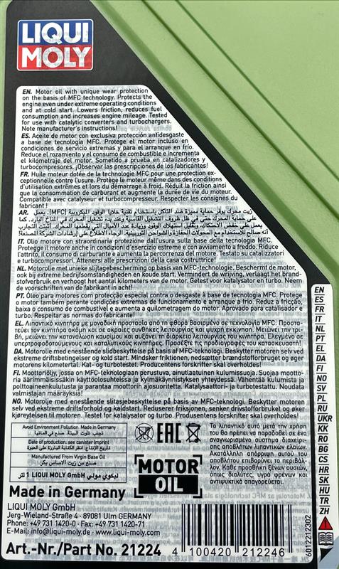 Synthetic technology low-friction motor oil with innovative Molygen wear-protection technology and extremely high power reserve for maximum performance. Good dirt suspending and cleaning capacity ensures optimum engine cleanliness. The results are savings in fuel and an extended service life for the engine. Assures reliable operation and maximizes the operating life of the diesel particulate filter (DPF). Exceeds the test requirements of well-known vehicle manufacturers.